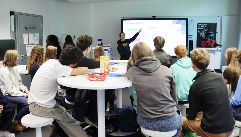 After having lunch together, our team made their way to COSMO Wissenschaftsforum. There, we had a look at the exhibition Explaining Artificial Intelligence. It was the first visit for our colleagues from Leipzig, as well as for a few colleagues from Dresden. At COSMO Wissenschaftsforum, Dr. Tiphaine Cattiau explained in detail the concept behind the exhibition. Not only are we very thankful for this wonderful introduction, we were also glad to receive positive feedback on our demonstrators from the visitors of the exhibition.